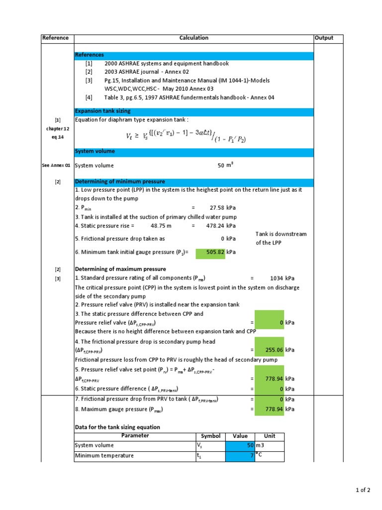 Expansion Vessel Calculation Sheet Pressure Pump